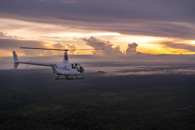 Helikoptervlucht bij zonsopgang over de Nitmiluk-kloof
