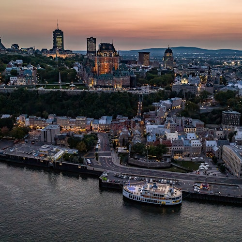 Koop vandaag nog je tickets voor een exquise dinerervaring aan boord vanaf een sunset cruise terwijl je geniet vanaf het beste nachtelijke uitzicht op Québec City.
