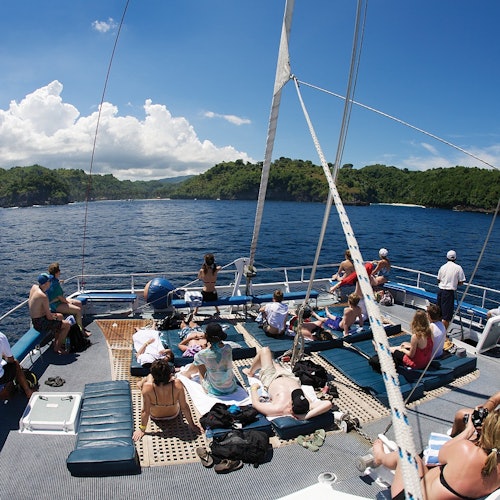 Hijs de zeilen en zet koers naar een tropisch avontuur op een luxe catamaran