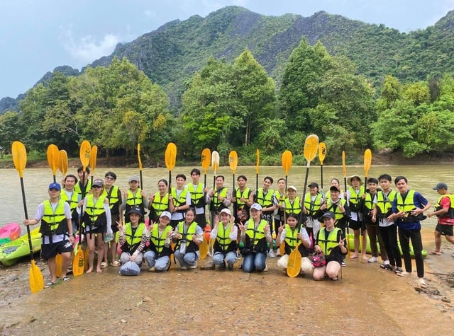 Kajakken op de Nam Song-rivier, raften in de Tham Chang-onderwatergrot, wandeltocht in de Tham Chang-grot, zwemmen in Blue Lagoon 1, spannende avonturen en natuurlijke schoonheid ervaren, en genieten van de lunch
