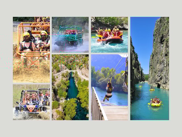 Duik in het avontuur tijdens deze watertour van een hele dag. Na een korte veiligheidsbriefing is het tijd voor een plons. Eerst ga je 13 kilometer raften, gevolgd door de wilde wateren van de Koprucay rivier. Op het laatste stuk ga je stand-up paddleboarden. Terug aan land volg je de bospaden tijdens een buggy-safari voordat je afkoelt in een opblaasbaar rivierwaterpark. Daarna is het tijd om te vissen voor je lunch. Je eindigt je avontuur met een 300 meter lange tokkelbaan over de rivier.