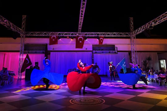 Zin in een avond om nooit te vergeten? Kom dan mee en laat je meevoeren in de bedwelmende sfeer van deze avond onder de sterren met een Turkse twist. En de Turken weten heel goed hoe je plezier maakt.Dansers in kleurige, folkloristische klederdracht draaien voor je ogen en laten je de dansen zien van over het hele land. En betoverende buikdanseressen strooien hun magie over je uit.Je geniet van een smakelijk diner en onbeperkt bier, wijn en frisdrank. En of je je laat meeslepen aan de zijlijn of opspringt en meedoet, je hebt sowieso een fantastische avond.