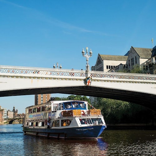 Neem deel aan een ontspannende cruise op de rivier de Ouse en bekijk de bezienswaardigheden van York vanaf het water met live commentaar! Reserveer een tijdstip, maar neem deel aan elke cruise die elke dag tussen 10:30 en 15:00 uur vertrekt.