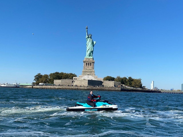 Berijd je eigen jetski en vaar langs de iconische skyline van New York. Geniet van een uitzicht van dichtbij op het Vrijheidsbeeld, Ellis Island en de Hudson Yards Vessel.