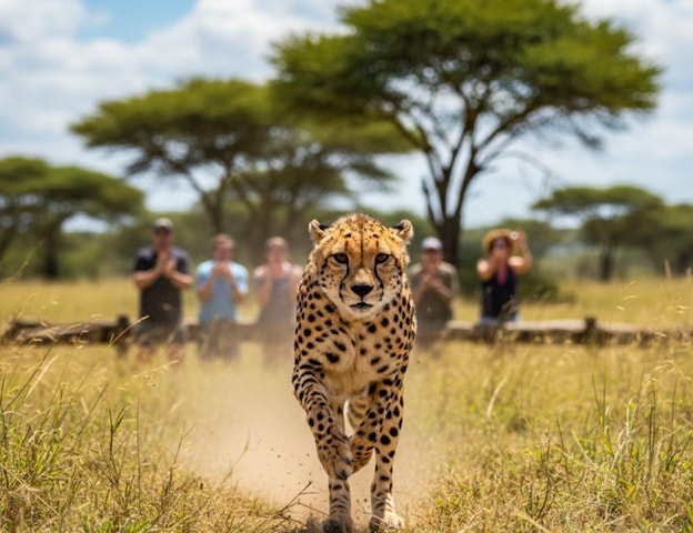 Zwiedzanie z przewodnikiem Ann van Dyk Cheetah Centre: zwiedzanie sanktuarium, rozmowy na temat opieki nad gepardami i ich ochrony, bezpieczne miejsca do robienia zdjęć, transport powrotny. Czas trwania: ~2–3 godz. Weź ze sobą wodę i ochronę przeciwsłoneczną.