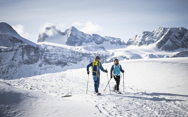 Odkryj Dachstein Krippenstein z biletem Yeti na rakiety śnieżne: w tym przejazd kolejką linową i wypożyczenie rakiet śnieżnych. Odkryj oznaczone zimowe szlaki i imponujące widoki