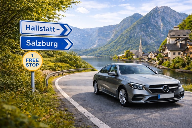 Prywatna luksusowa wycieczka z Salzburga do Hallstatt i regionu jezior. Podróżuj Mercedesem-Benz klasy V (V 300) z lokalnym przewodnikiem i odkryj wioskę z listy UNESCO z malowniczymi przystankami nad jeziorem.