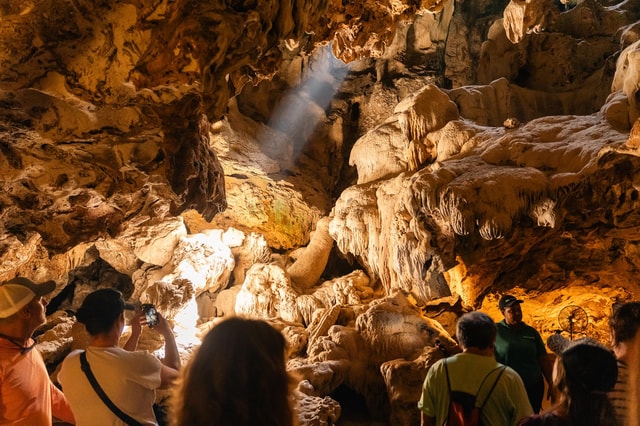 Doświadcz wycieczki GreenEscape w jednym, spokojnym dniu Odkryj słynny system jaskiń na wyspie, popływaj z żółwiami i zrelaksuj się na miękkim, białym piasku Kenepa, prowadzony przez lokalnych mieszkańców.