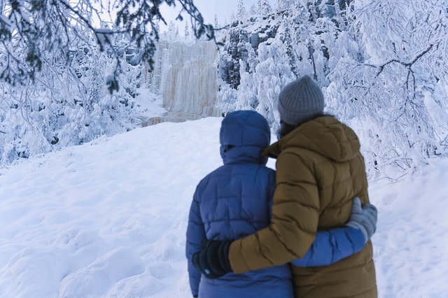 Dołącz do wycieczki do dziewiczego obszaru leśnego Posio, 110 km od Rovaniemi, magicznego miejsca przypominającego krainę baśni. Przemierzaj szlaki i podziwiaj magiczne widoki zamarzniętych wodospadów.