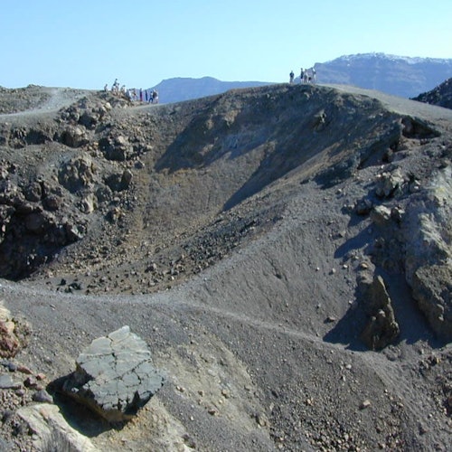 Rejs wokół kaldery Santorini, wędrówka po wulkanie, kąpiel w gorących źródłach i druga kąpiel w pobliżu Thirassia, a wszystko to podczas podziwiania oszałamiającego wulkanicznego krajobrazu wyspy.