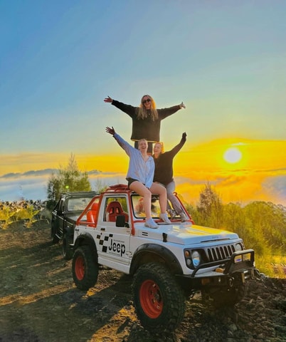 Odkryj piękno góry Batur podczas prywatnej wycieczki jeepem z napędem na 4 koła i odwiedź naturalne gorące źródła o alternatywnej porze dnia i zachodzie słońca, dzięki czemu nie musisz budzić się wcześnie i pomijać lunchu.