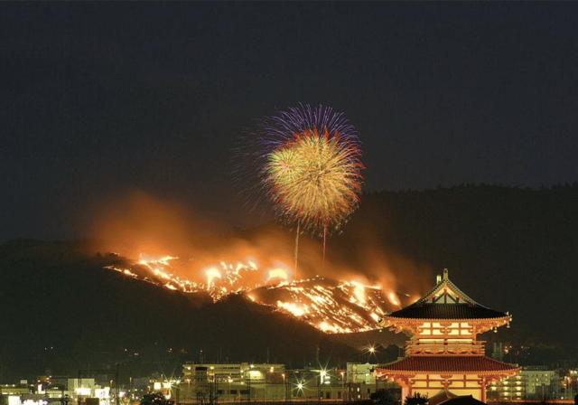 Weź udział w wielowiekowym festiwalu Wakakusa Yamayaki, podczas którego góra Wakakusa zostaje uroczyście podpalona, a towarzyszą temu fajerwerki i spektakularne nocne widoki. To wyjątkowa, sezonowa tradycja, która odbywa się tylko raz w roku.