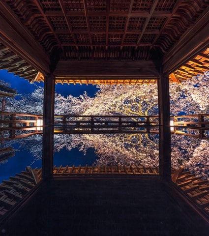 Osaka: nocne kwitnienie wiśni – świątynia Mitsui-ji i Omihachiman