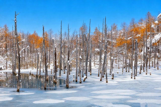 Journey into the winter wonderland of Hokkaido with captivating sights and activities, including Japan's northernmost zoo, Biei Blue Pond, and Furano.