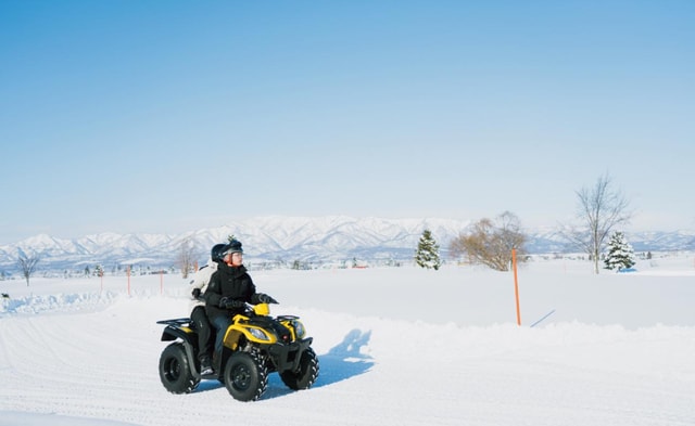 Zabaw się zimą w Hokkaido, korzystając z atrakcji śnieżnych, takich jak skutery śnieżne i mini skutery śnieżne (wymagana dodatkowa opłata)!