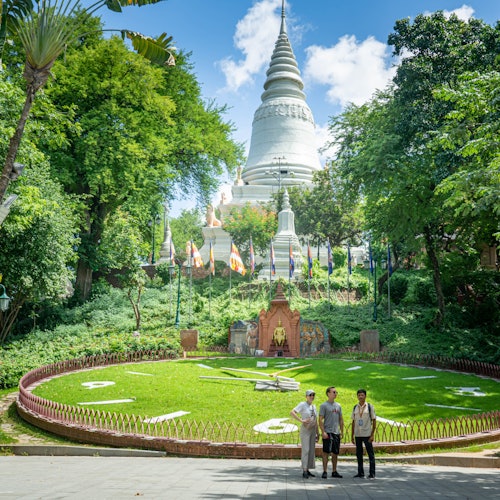 Zarezerwuj 2,5-godzinną pieszą wycieczkę, aby zwiedzić najpiękniejsze zabytki Phnom Penh, w tym Pałac Królewski i park Wat Botum.