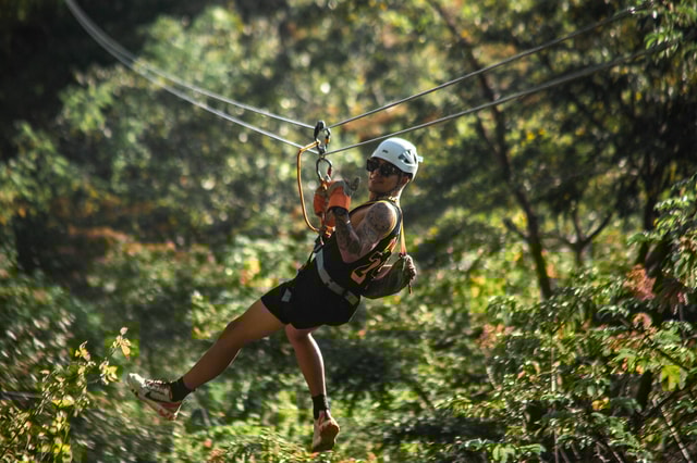 Szybuj nad kanionami, bujnymi lasami i wodospadami podczas przygody na tyrolce w parku rozrywki Arenal Mundo w La Fortuna i ciesz się zjeżdżaniem po 7 różnych ekscytujących linach z baldachimem.