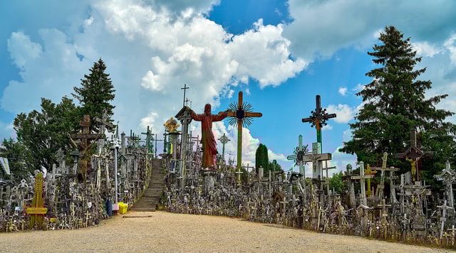 Odkryj Górę Krzyży na Litwie podczas wycieczki z Rygi. Podróżuj wygodnym vanem i miej wolny czas na zwiedzanie tego miejsca pielgrzymek, w którym wzgórze zdobi ponad 55 000 krzyży.