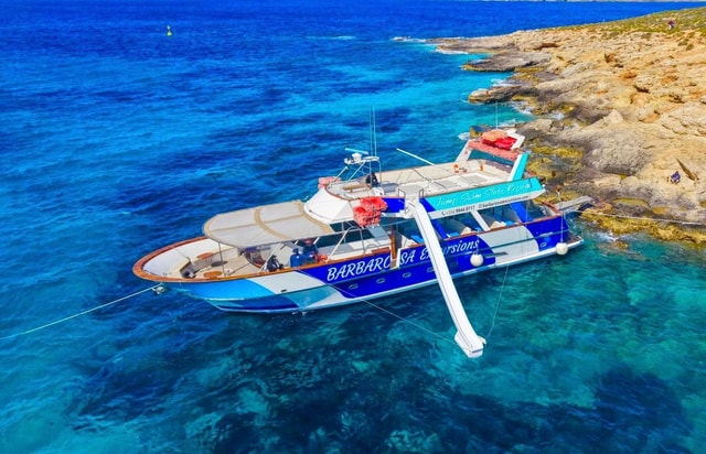 Rejs rodzinnym statkiem na wyspy Comino i Gozo. Zanurz się w turkusowych wodach Błękitnej Laguny, odkrywaj Gozo i ciesz się komfortem na pokładzie: zjeżdżalnią wodną, koktajlami, świetną muzyką, cieniem i tarasami słonecznymi.