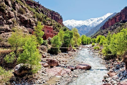 Z poziomu morza wjedziesz na dużą wysokość podczas całodniowej wycieczki i poczujesz zastrzyk adrenaliny. Pojedziesz samochodem z napędem 4x4 w góry Atlas z nadmorskich równin Agadiru, aby odkryć berberyjską wioskę Imouzzer Ida Outanane. Jamal, nasz lokalny przewodnik, mówi: „Imouzzer oznacza wodospad w języku berberyjskim, języku gór Atlas. Rzeczywiście, w sercu naszej zielonej doliny znajduje się kilka wodospadów. To miejsce jest znane przede wszystkim z miodu wysokiej jakości”. Twoja przygoda po bezdrożach gór Atlasu Wysokiego rozpoczyna się od lekkiego śniadania, a następnie przystanku na zdjęcia w chłodnej, porośniętej palmami oazie Tamzargout, gdzie możemy rozprostować nogi. W miarę jak będziemy jechać wyżej w góry, zapierające dech w piersiach widoki na Rajską Dolinę z pewnością zrobią na Tobie niemałe wrażenie. Dotrzemy do wioski Immouzer, aby zobaczyć, jak toczy się życie w typowej górskiej społeczności berberyjskiej. W gorące dni można zobaczyć miejscowe dzieci skaczące ze skał do naturalnych basenów tuż za wioską. Spacerując po wiosce, będziesz mijać stragany z marokańskimi pamiątkami i cennym lokalnym miodem. Jamal mówi: „Moja mama przygotowywała domowy przysmak znany jako amlou, zrobiony z lokalnego miodu zmieszanego z kruszonymi migdałami i olejem arganowym – prawdziwy berberyjski smakołyk”. Przyjdzie też czas na lunch al fresco przygotowany ze świeżych, lokalnie pozyskiwanych produktów. Zanim wrócimy do Agadiru inną trasą przez góry, będziesz mieć trochę wolnego czasu na relaks i podziwianie spektakularnego otoczenia.