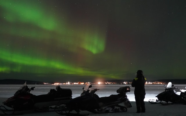 Skutery śnieżne oferują niezrównaną swobodę podczas pogoni za zorzami polarnymi i niezapomniane wrażenia z odkrywania przyrody Szwecji podczas próby dostrzeżenia zorzy polarnej.
