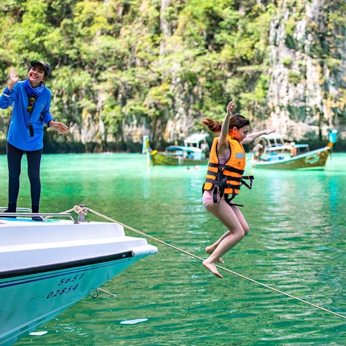 Odkryj rajskie wyspy Phi Phi, w tym zatokę Maya, nurkowanie z rurką i wyspę Khai. Poznaj znane z filmów miejsca i tętniące życiem morskie życie.