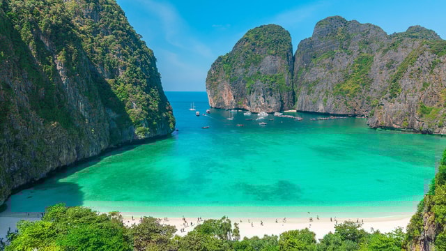 Doświadcz bosego stylu życia i tropikalnego krajobrazu wysp Phi Phi na Morzu Andamańskim podczas całodniowej wycieczki z Krabi. Pływaj z kolorowymi rybami w Lohsamah i Monkey Bay, nurkuj wśród ogrodów koralowych i leniuchuj na białych piaszczystych plażach w Maya Bay.