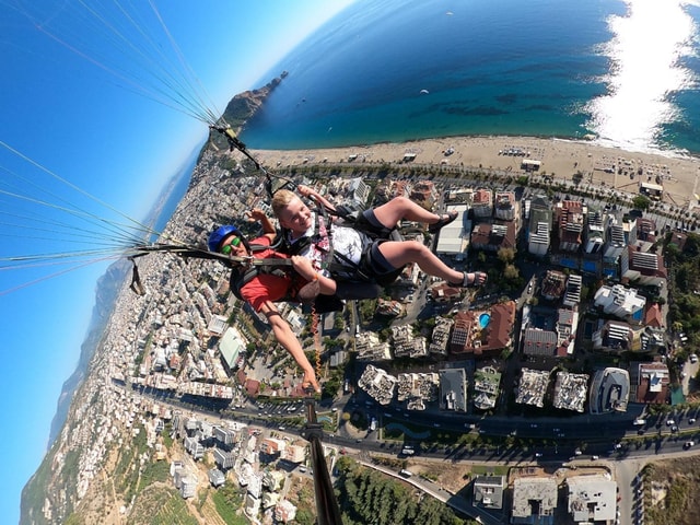Podziwiaj piękno turkusowego wybrzeża Alanyi i piaszczystych plaż podczas tandemowego lotu paralotnią. Wyląduj z powrotem na Plaży Kleopatry po ekscytujących 25 minutach w powietrzu.