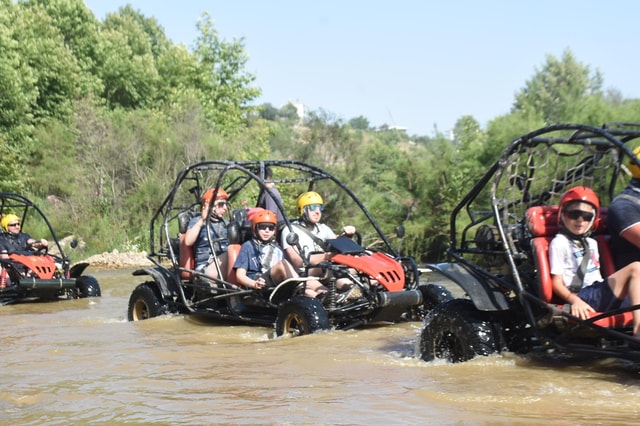 Ciesz się zabawną i bezpieczną rodzinną przygodą z buggy w kanionie Köprülü. Jedź przez malownicze leśne szlaki i strefy rzeczne na trasie trwającej 1 godzinę i 45 minut. W cenę wliczony jest transport z hoteli w Side i Belek.