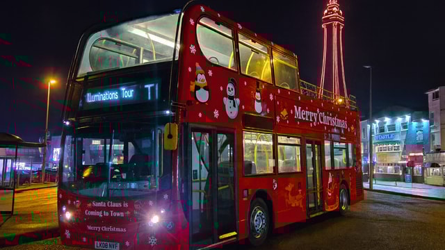 Blackpool Illuminations to darmowy pokaz świateł numer 1 na świecie, rozciągający się na 6 mil linii brzegowej kurortu. Zabierzemy Cię na przejażdżkę naszym specjalnie udekorowanym świątecznym autobusem.