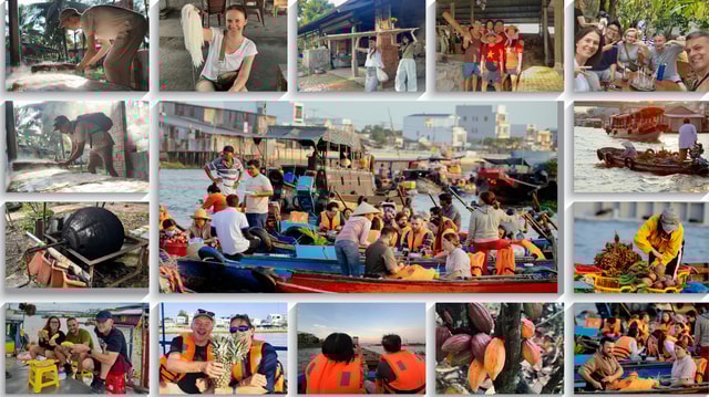 Wyrusz z Ho Chi Minh autobusem lub prywatnym samochodem, aby zwiedzić największy pływający targ w Wietnamie, odwiedzić farmę kakao, odkryć tradycyjną produkcję makaronu ryżowego i popłynąć spokojnymi kanałami.
