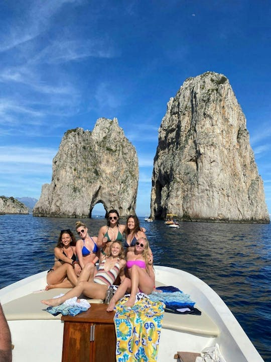 Wejdź na pokład tradycyjnej łodzi i wybierz się na wycieczkę z przewodnikiem po Capri, odkrywając kultowe Faraglioni i Marina Piccola. Ciesz się lokalnym limoncello i fascynującymi opowieściami.