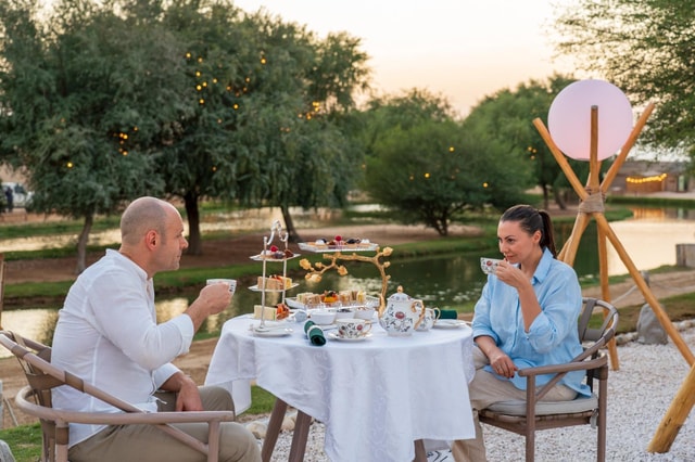Spróbuj tradycyjnej emirackiej herbaty z zapierającymi dech w piersiach widokami na oazę Al Marmoom. Delektuj się najlepszymi słodyczami, lokalnymi herbatami i świeżymi wypiekami przy autentycznym beduińskim stole.