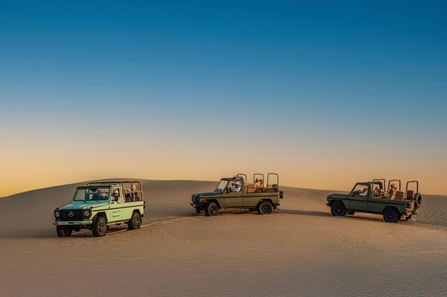 Przebij się przez piaszczyste wydmy Dubaju kultową klasą G Vintage. Zobacz styl życia Beduinów i sesję parzenia kawy na żywo, ciesz się przejażdżką na wielbłądzie, obserwowaniem zwierząt i śniadaniem.
