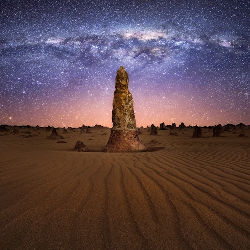 Passe uma noite incrível sob um céu limpo e cheio de estrelas no Pinnacles Desert