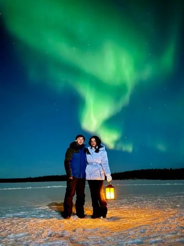 Aventura em pequenos grupos na cabana familiar super acolhedora da Soma Adventures, junto a um lago congelado no deserto. Snacks caseiros e brilhantes luzes do norte — uma noite que nunca vais esquecer.