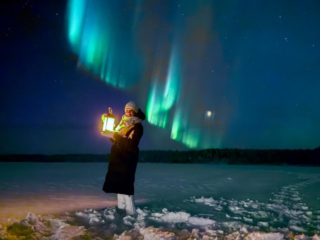 Pegue as raquetes de neve e vá em busca da aurora boreal em Kittilä. Iremos levá-lo a uma das melhores zonas para contemplar esse fenômeno natural.