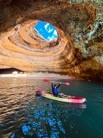 Desfrute de um passeio de caiaque até a bela caverna de Benagil com um guia