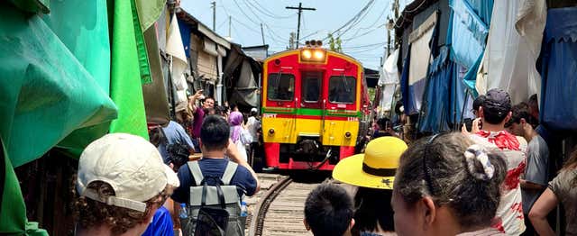 Um momento turístico, mas único. Viaja de comboio por um mercado, navega pelos canais e descobre a Tailândia rural, onde a tradição encontra o turismo, com um guia que fala inglês e um audioguia em 28 idiomas.