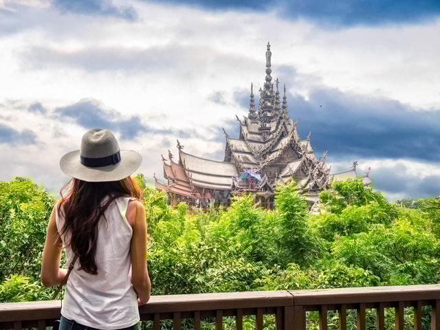 Relaxa e desfruta de belos locais na cénica Praia de Pattaya numa viagem de 1 dia a partir de Banguecoque. Sobe ao miradouro de Pattaya e visita o templo do Santuário da Verdade.