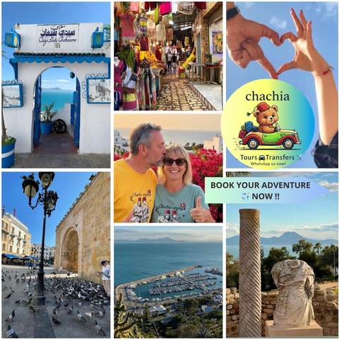 ✨ Não perca a excursão VIP da Simba! Visite a Medina de Tunes/Bardo, Sidi Bou Said ou Cartago com um motorista anfitrião no seu ritmo. Aproveite descontos para grupos, recolha VIP e avaliações incríveis. Reserve já, os lugares são LIMITADOS!