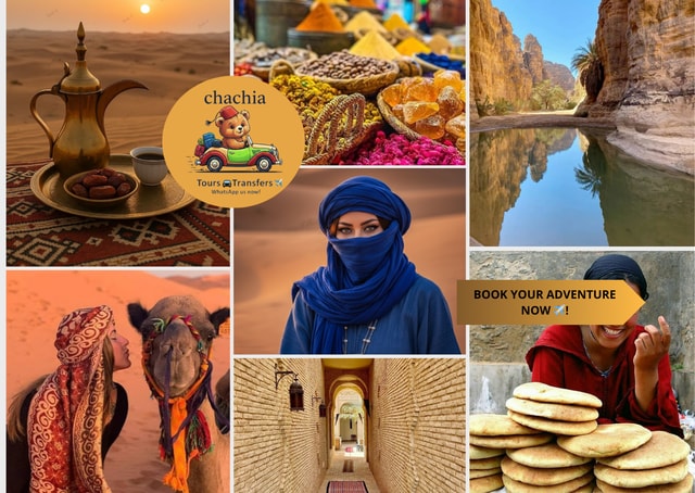 Uma excursão divertida por excelência conhecendo os belos oásis com suas lindas cachoeiras se quiser tomar banho ali, com a deliciosa comida que caracteriza o lugar, depois atravessar o deserto pelas dunas de areia, que oferecem muitas aventuras com o sol do pôr do sol no final do dia. Terminamos com uma visita ao cesto Nafta, que é um local maravilhoso.