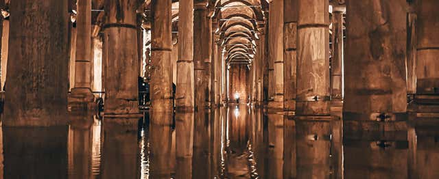 A Cisterna da Basílica é um lugar imperdível em Istambul. Reservando o ingresso, você passeará entre suas 336 colunas para apreciar sua iluminação.